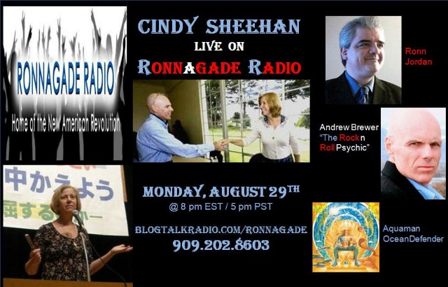 Peace Activist Cindy Sheehan joins BlogTalkRadio host Ronn Jordan on “Ronnagade Radio: Home of the New American Revolution”
